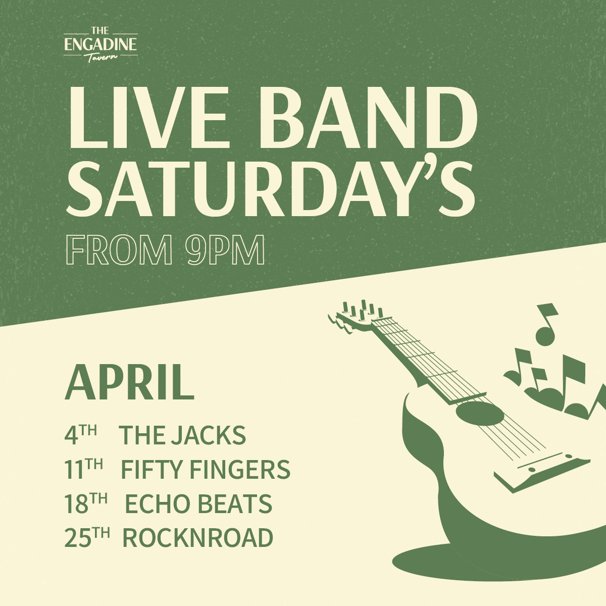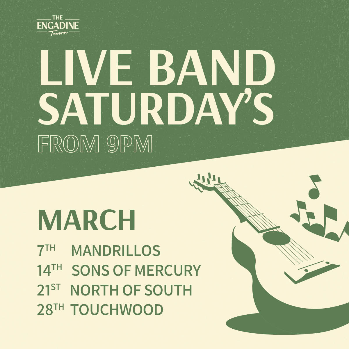Join us every Saturday night for live bands from 9PM and a great time at The Tav!